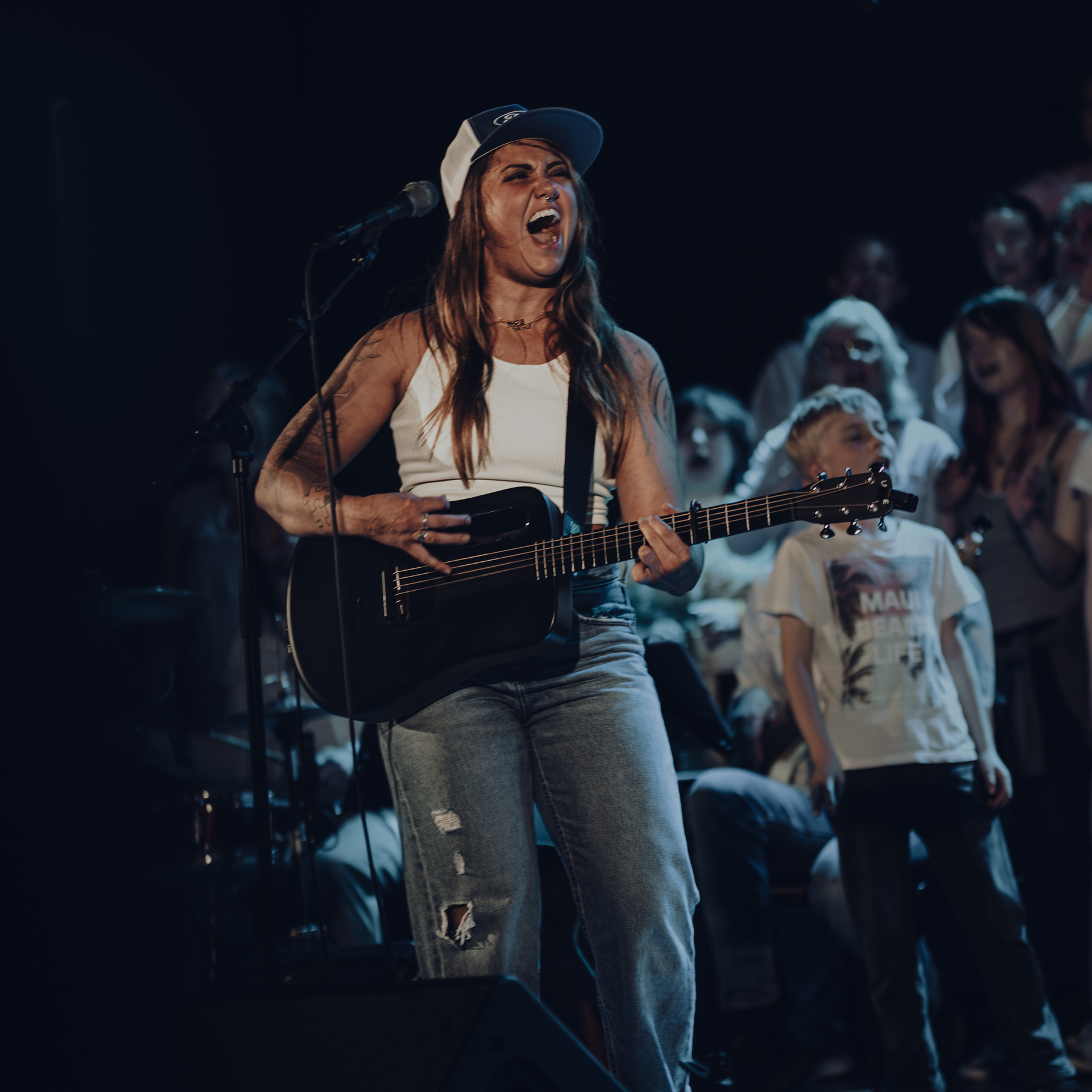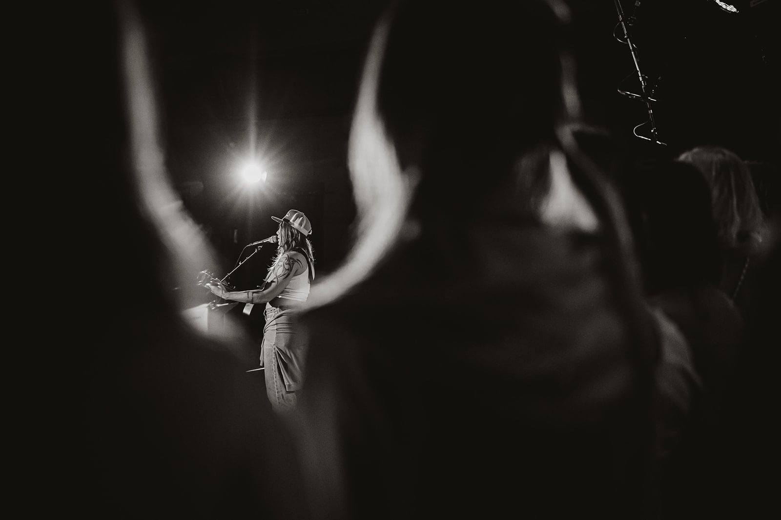 Med egna låtar om livet, relationer och sårbarhet skapar hon rum där publiken får både landa och känna sig delaktig.