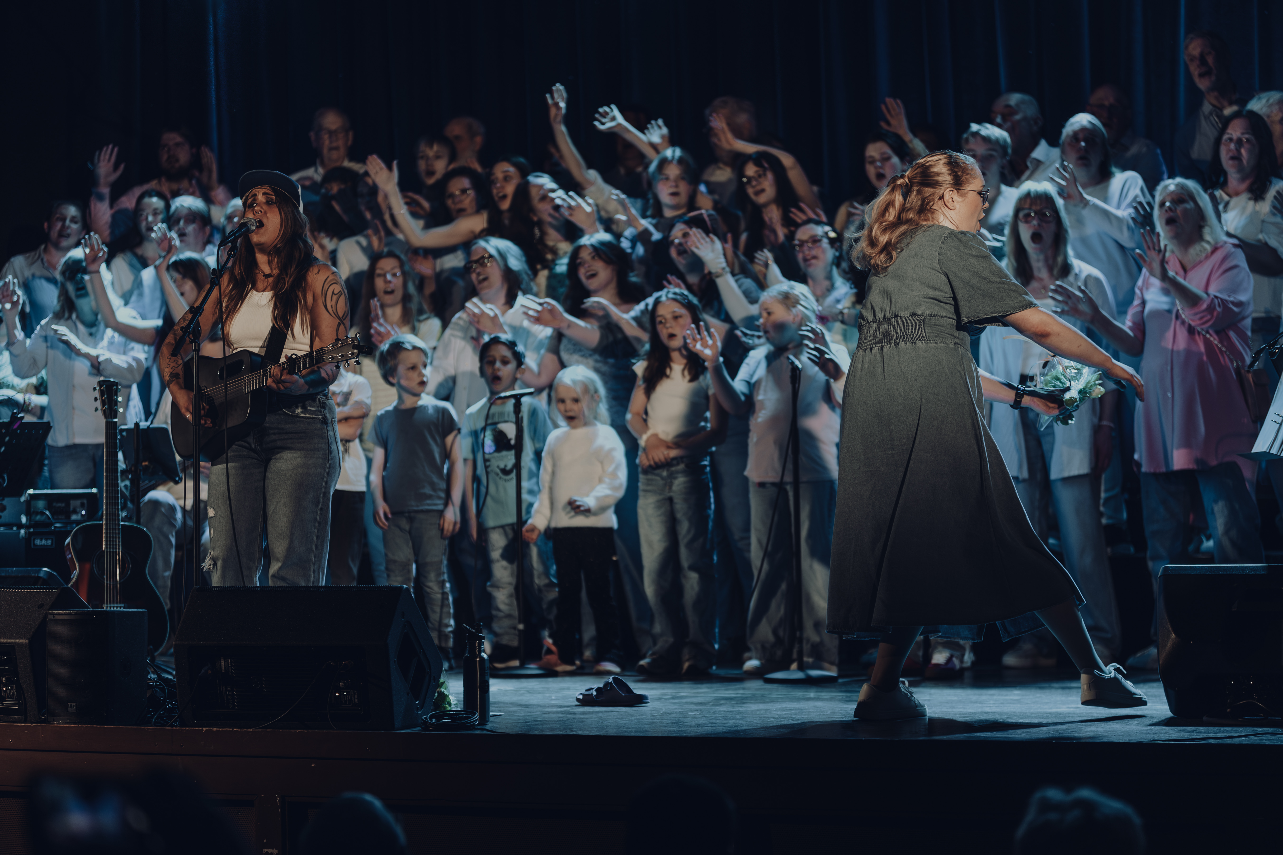En kör på 80 personer under ledning av Sara Montelius