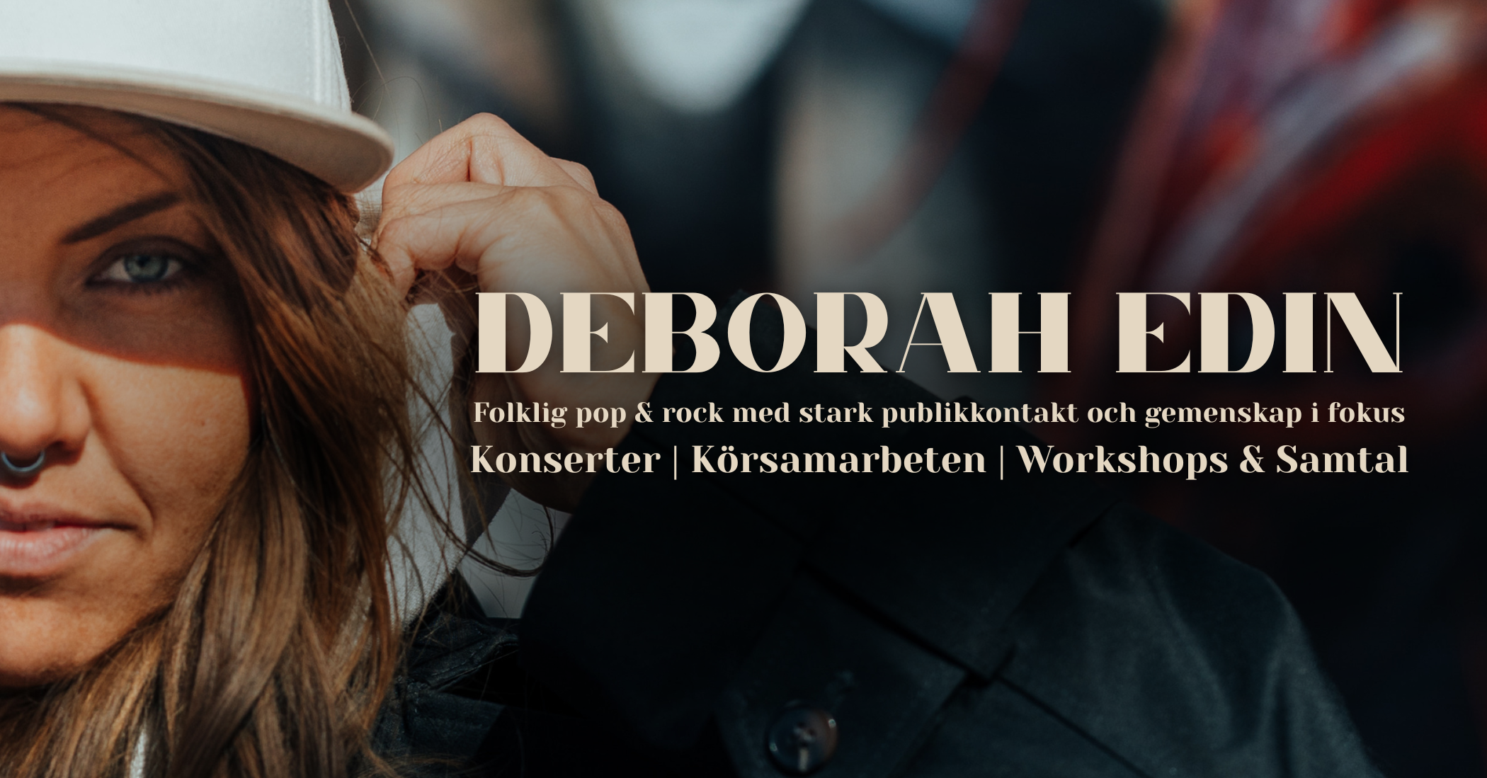 Deborah Edin är artist, låtskrivare och inspiratör som bär en vision om ett mer levande, sårbart och kraftfullt sätt att vara människa. Med sin röst som verktyg – i musiken, i samtalet och i community – bygger hon broar mellan det personliga och det kollektiva, mellan kreativitet och inre växande.